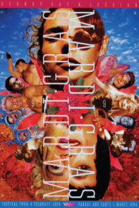 Boy George was the headliner at the party—which featured a poster by French artists Pierre et Gillies—and the Pet Shop Boys were in the crowd. The first ever Mardi Gras CD, mixed by DJ Stephen Allkins, was released. Over 150,000 people braved the rain to watch the parade, which included a tribute to Ab Fab’s Patsy Stone. Elle McFeast and Julian Clary hosted the TV coverage and Madonna filmed a special message, dedicating the world premiere of her music video for Bedtime Stories.