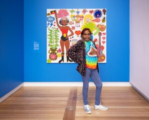 The Huxleys: “We met Kaylene at the Archibald Prize back in 2018 and it was love at first sight. We were completely in awe of her joy, her skill and her embrace of colour, popular culture, queer icons and the sacred beauty of her Anangu Culture. We love the same things! We love dressing up, embracing magic and the power of our creative heroes to help us soar. We believe Kaylene is what the world needs now, more than ever. We were actually her third choice to host after Dolly Parton and Cher were unavailable. We are delighted to be in such an esteemed company. We are going to be celebrating the music Kaylene loves and channeling joy, colour and dance into a night filled with incredible performers with a focus on queer, femme and First Nations’ artists. We want everyone to be the hero they dream of.”