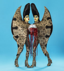 The Huxleys: “The costumes, makeup and art help us find a voice and a confidence that is often hard to find when you’ve grown up being bullied and ostracised just for being yourself. These costumes are like armour, like being your own glam rock hero. Growing up as queer boys in suburban homophobic places in the ‘80s and ‘90s was a challenge, but art was the escape. It was the protection, the fantasy that we would find a place we felt free and love and joy. Our art is what we call a ‘queer utopia’, where too much is seldom enough and where you can be whatever you dream of. Art is the answer. For many years we tried to get people to take notice of our art. The art world can be so serious and so exclusive and we just thought we can’t sit around waiting for people to give us permission; we are just going to put our work into the world and if people love it or hate it.. that’s their problem. We just encourage each other to keep being more ridiculous. We love this quote by Andy Warhol: “Don’t think about making art, just get it done. Let everyone else decide if it’s good or bad, whether they love it or hate it. While they are deciding, make even more art.”